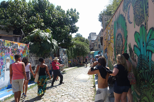 Fortunately, I worked with a local trip planner, Matuete. When I said I wanted to see local contemporary art, they suggested going with a guide to visit two artists in one of the largest favelas, Paraisopolis, with population about 100,000. Translated, the name Paraisopolis means Paradise City. Compared to other favelas, it is a paradise. A favela is a group of houses established without permission or ownership, where people live in cramped conditions, often lacking basic sanitary facilities. Sao Paulo is full of favelas, numbering in the hundreds. Some are extremely poor, with houses made of paperboard. Inhabitants of many of them resort to begging. We were told that Paraisopolis deserves its name.